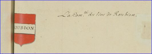 De gueules à la fasce d'argent chargée de l'inscription « ROBION » en lettres capitales de sable.