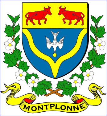 (2015) D'azur au chevronnel renversé ondé d'or, accompagné en chef d'une colombe fondant en pal d'argent tenant dans son bec une ampoule d'or; au chef d'or chargé de deux vaches affrontées de gueules.