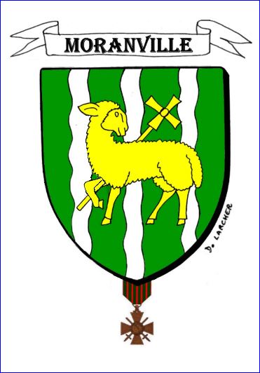 (2015) De sinople à trois vergettes ondées d'argent; à l'agneau pascal passant d'or, la tête contournée, portant une croix processionnelle de même en barre, brochant sur le tout.