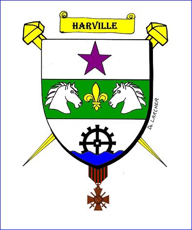 (2015) D'argent à la fasce de sinople chargée d'une fleur de lis d'or, accostée de deux têtes de chevaux affrontées d'argent, accompagnée en chef d'une étoile de pourpre, et en pointe d'une roue de moulin de sable mouvant d'une plaine ondée d'azur.
