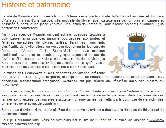 Devise: « miranda in situ pulchra » (Mirande dans un site magnifique).