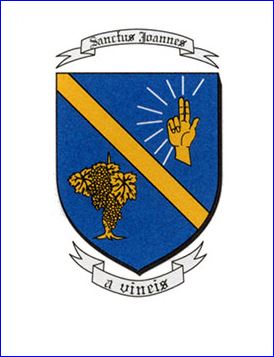 D'azur à la cotice d'or accompagnée en chef d'une main bénissant du même rayonnante d'argent à dextre et en pointe d'un cep de vigne d'or.