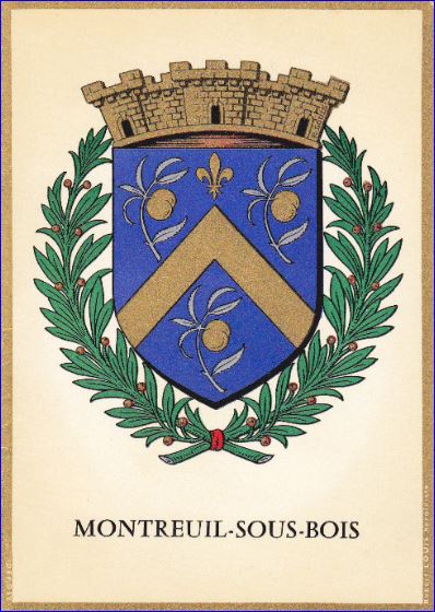 Durant l’Ancien Régime, la ville de Montreuil ne possède pas d’armoiries, car elle appartient au domaine royal et aucun document, dans les archives, n’en décrit. Les pêches, fruits ayant fait la richesse de Montreuil, sont représentées sur le blason de la ville adopté officiellement le 9 juillet 1942, durant la période de l’occupation allemande.