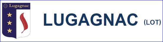 Parti: au 1er d'azur à trois étoiles d'or rangées en pal, au 2e d'argent à la plume de gueules; le tout sommé d'un comble d'azur chargé le l'inscription d'or « Lugagnac » adextrée d'une croix cléchée, vidée et pommetée de douze pièces du même.