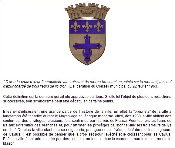 (1963) D'or à la croix fleurdelisée d'azur au croissant du même brochant en pointe sur le montant; au chef d'azur chargé de trois fleurs de lis d'or.