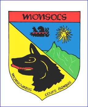 (1987) Tranché: au 1er d'azur à la montagne de sinople, surmontée à dextre d'un lion naissant de sable, armé et lampassé de de gueules et chargé d'un lambel à cinq pendants du même et à senestre d'un soleil d'or, au 2e d'or à la tête de loup arrachée de sable, languée et allumée de gueules.