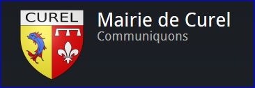 Parti d'or au dauphin d'azur barbé, crêté, lorré, oreillé et peautré et lorré de gueules et de gueules à la fleur de lis d'argent surmontée d'un lambel du même, le tout sommé d'un chef d'argent chargé de l'inscription « CUREL » de sable.