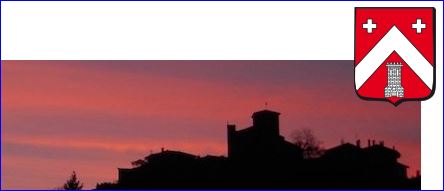De gueules au chevron d'argent accompagné en chef de deux croisettes et en pointe d'une tour, le tout du même, la tour maçonnée de sable.