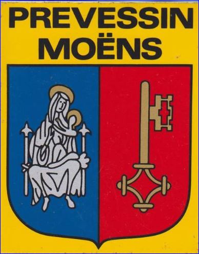 (v. 1975) Parti: au 1er d'azur à la Vierge à l'Enfant, assise, d'argent, auréolés d'or, au 2e de gueules à la clef contournée d'or.