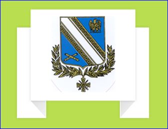 (1959) D'azur à la bande d'argent côtoyée de deux jumelles potencées imbriquées intérieurement d'or, accompagnée en chef d'une aigle impériale et en pointe de deux canons passées en sautoir, le tout d'or.