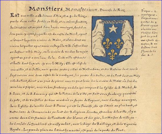 Armorial de Pierre de La Planche, 1669. La description des provinces et villes de France, extrait. Bibliothèque du Musée Condé de Chantilly.