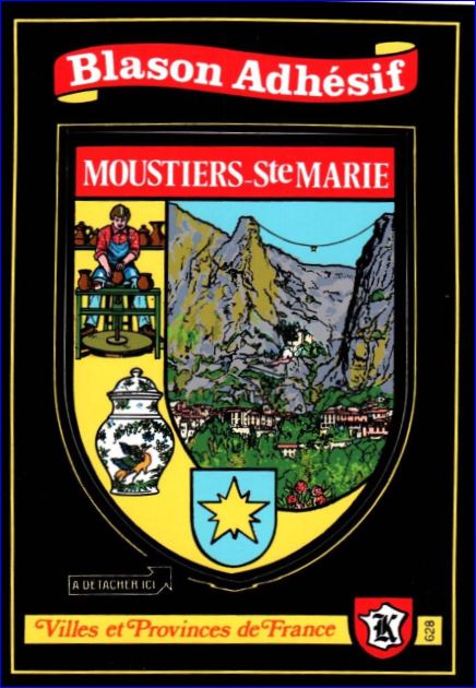 D'azur à deux rochers d'argent mouvant des flancs, posés sur une terrasse de sinople, entre lesquels sont deux fleurs de lis d'or en fasce, et en chef une chaîne d'argent reliant les rochers à laquelle est appendue par un chaînon une étoile d'or.