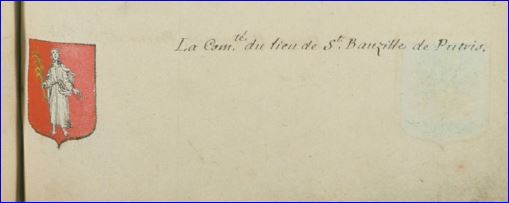 De gueules à saint Bauzille d'argent tenant en sa dextre une palme d'or.
