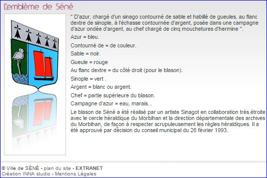 (1993) D'azur au sinago [bateau de pêche local] contourné de sable sous voiles de gueules, adextré de sinople chargé d'une échasse contournée d'argent, posée sur une champagne fascée ondée d'azur et d'argent; au chef d'argent chargé de cinq mouchetures d'hermine de sable.