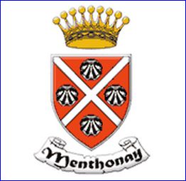 De gueules au sautoir d'argent cantonné de quatre coquilles du même.