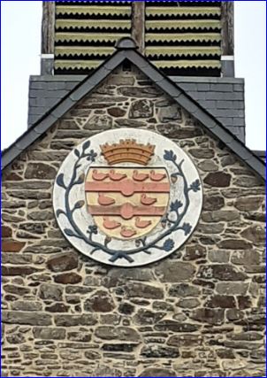 D'or à deux fasces nouées de gueules, accompagnées de neuf merlettes du même ordonnées en orle 4, 2 et 3.