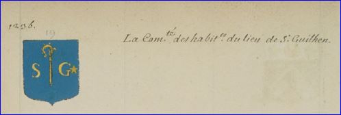 D'azur à la crosse accostée des lettres capitales S à dextre et G à senestre et senestrée en chef d'une étoile, le tout d'or.
