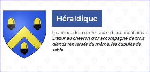 D'azur au chevron d'or accompagné de trois glands renversés du même, les cupules de sable.