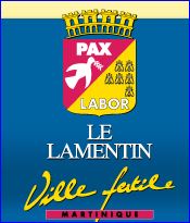 Taillé: au 1er de gueules à la colombe contournée d'argent volant en barre et tenant un rameau d'olivier, surmontée de l'inscription « PAX » en lettres capitales du même, au 2e d'or à six abeilles de sable, ailées du champ, 2, 3 et 1, soutenues de l'inscription « LABOR » en lettres capitales d'argent.