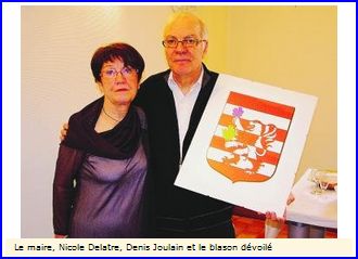 (2011) Fascé d'argent et de gueules, au lion brochant de l'un en l'autre tenant dans sa senestre un rameau de buis de sinople et dans sa dextre une fleur de pervenche de pourpre tigée de sinople.