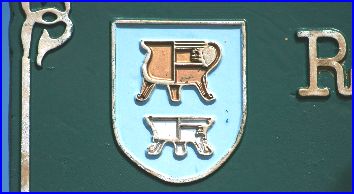 D'azur à deux coupes de pots l'un au-dessus de l'autre le 1er d'or, le 2e d'argent.