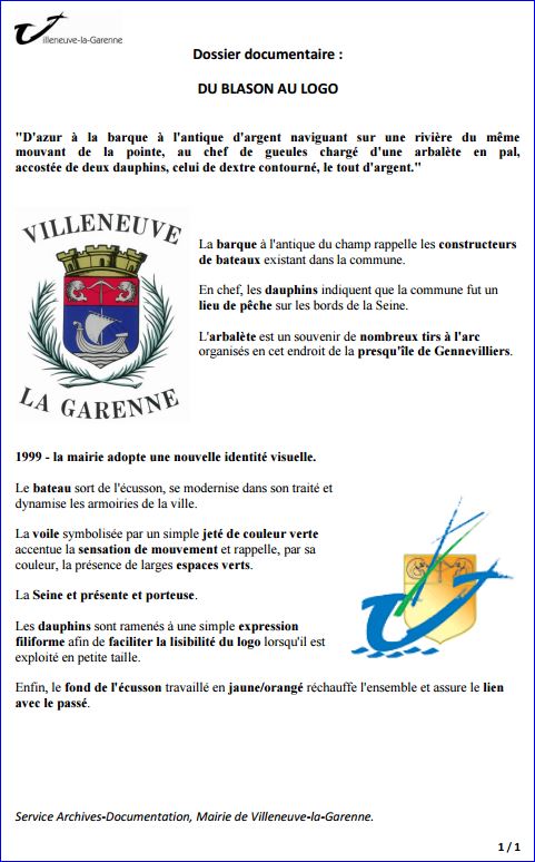 D'azur à la nef d'argent voguant sur une rivière du même mouvant de la pointe; au chef cousu de gueules chargé d'une arbalète posée en pal, accostée de deux dauphins affrontés, le tout d'argent.