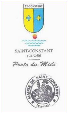 Parti: au 1er d'or à la croisette d'azur, au 2e d'azur à la croisette d'or; le tout sommé d'un comble d'argent chargé de l'inscription « ST-CONSTANT » de sable.