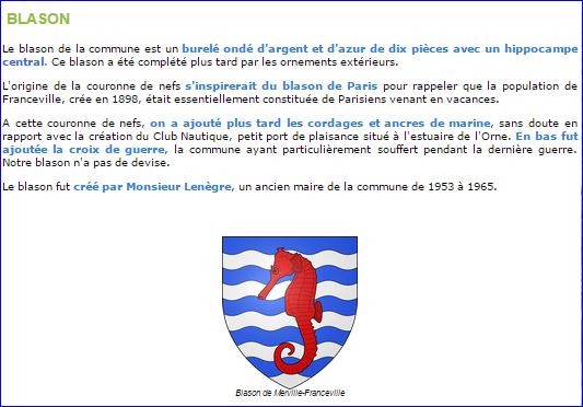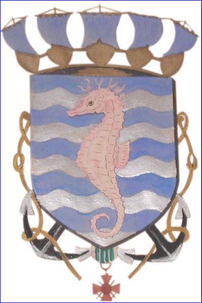 (v. 1950) Burelé-ondé d'argent et d'azur, à l'hippocampe de gueules brochant sur le tout.