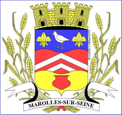 (2007) Tiercé ondé en fasce: au 1er d'azur au chevalier [oiseau] d'argent accosté de deux fleurs de lis d'or, au 2e de gueules à deux chevrons d'argent, au 3e d'or à la poterie de gueules.