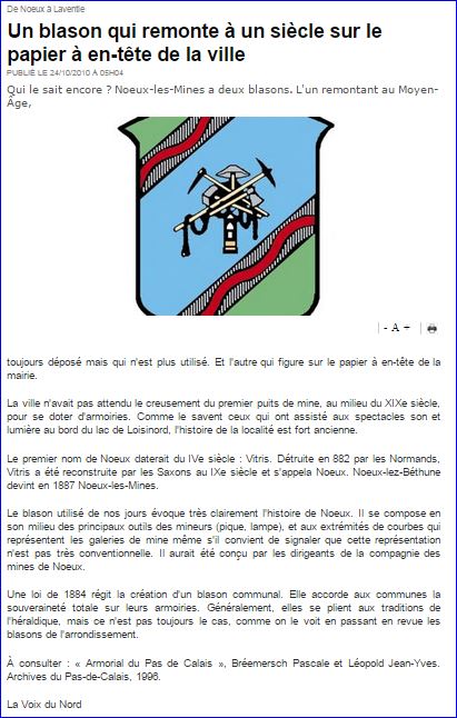 Article de presse La Voix du Nord du 24 octobre 2010 (site du journal).