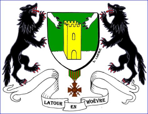 (2015) De sinople à la tour carrée d'or, posée sur une plaine d'argent, accompagnée en chef de deux pattes de lion affrontées du même, armées de sable et mouvantes des angles du chef.