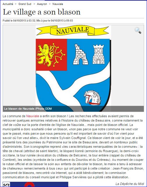 Article de presse La Dépêche du Midi du 4 octobre 2015 (site du journal).