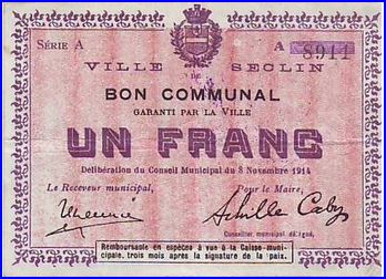 Billet de nécessité, 1914.