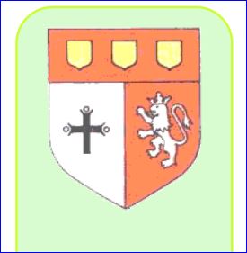 (1985) Parti: au 1er d'argent à la croix de saint Benoît de sable, au 2e de gueules au lion couronné d'argent; le tout sommé d'un chef de gueules chargé de trois écussons d'or.