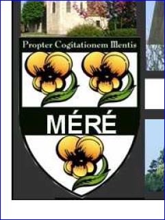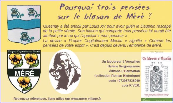 D'argent à la fasce de sable chargée de l'inscription « MÉRÉ » d'argent et accompagnée de trois pensées tigées et feuillés au naturel.