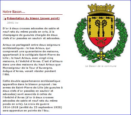 (1994) D'or à deux crosses adossées de sable, accompagnées de neuf rats du même, trois rangés en chef, trois en pal à dextre et trois en pal à senestre, adossés à ceux de dextre; à la champagne de gueules chargée de deux clefs d'or passées en sautoir.
