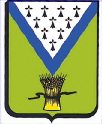 Divisé en chevron renversé: au 1er d'argent à dix mouchetures d'hermine de sable ordonnées 4, 3, 2 et 1, au 2e de sinople à la gerbe de trente épis de blé d'or liée de sable; au chevron ondé et renversé d'azur brochant sur la partition.