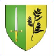 Parti: au 1er de sinople à l'épée d'argent garnie d'or, au 2e d'or au favier [plante de fève] de sable.