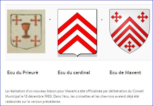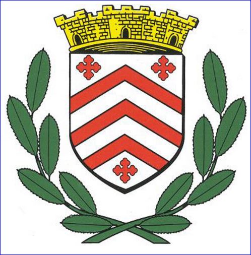 (1983) D'argent à trois chevrons de gueules, accompagnés de trois croisettes tréflées du même.