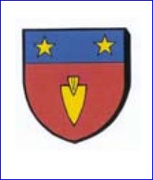 De gueules au soc de charrue d'or posé en pal, la pointe en bas; au chef cousu d'azur chargé de deux étoiles d'or.