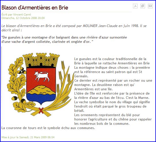 Blason sur le site de la commune, 2012.