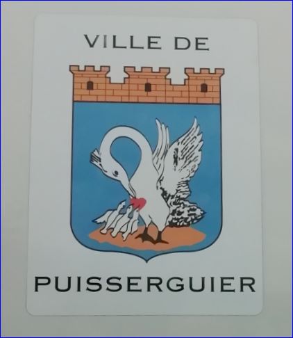 D'azur au pélican d'argent avec sa piété de gueules sur son aire d'or.