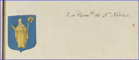 D'azur à saint Sériès [ou Arrige] évêque, vêtu pontificalement, mitré, crossé, et bénissant d'or.