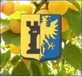 Mi-parti: au 1er d'or à la tour de sable ouverte du champ, au 2e d'azur à l'aigle contournée d'or.
