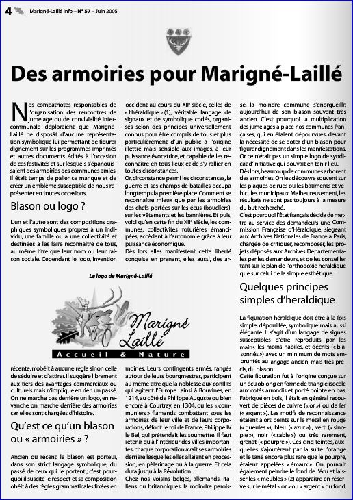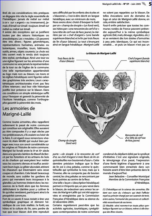 (2004) De sinople au rencontre de cerf d'or; au chef d'argent chargé de trois fleurs de lin d'azur.