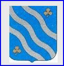 D'azur à trois bandes ondées d'argent, accompagnées en chef et en pointe de deux trèfles d'or.