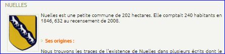 Blason de Nuelles sur le site le nouvelle commune, 2015.