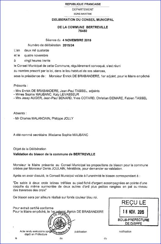 Les dessins des blasons sont exécutés par mes soins.