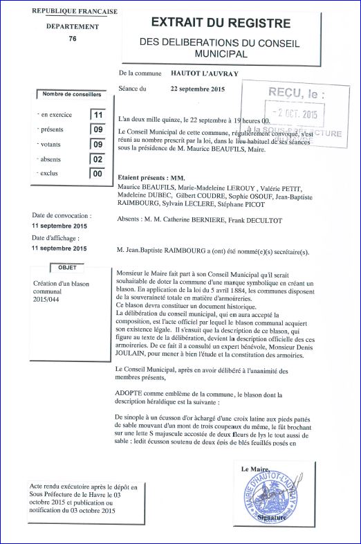 Extrait du registre des délibérations du 22 septembre 2015 (1/2).