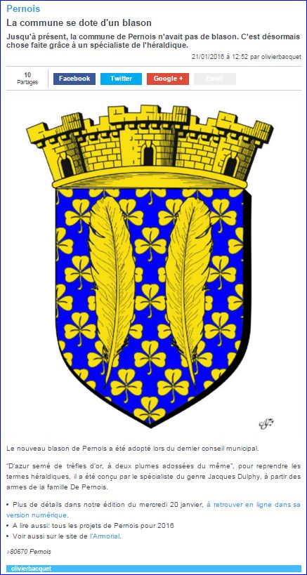 Les dessins des blasons sont exécutés par mes soins.